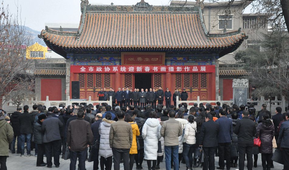 1月14日上午,在市政协七届三次会议开幕之际,全市政协系统迎新春书画摄影作品展在万寿宫开展。这次展览由市政协主办,市政协书画研究院、秦州区政协、市书协、市美协、市摄影协会、市书画院联合承办。