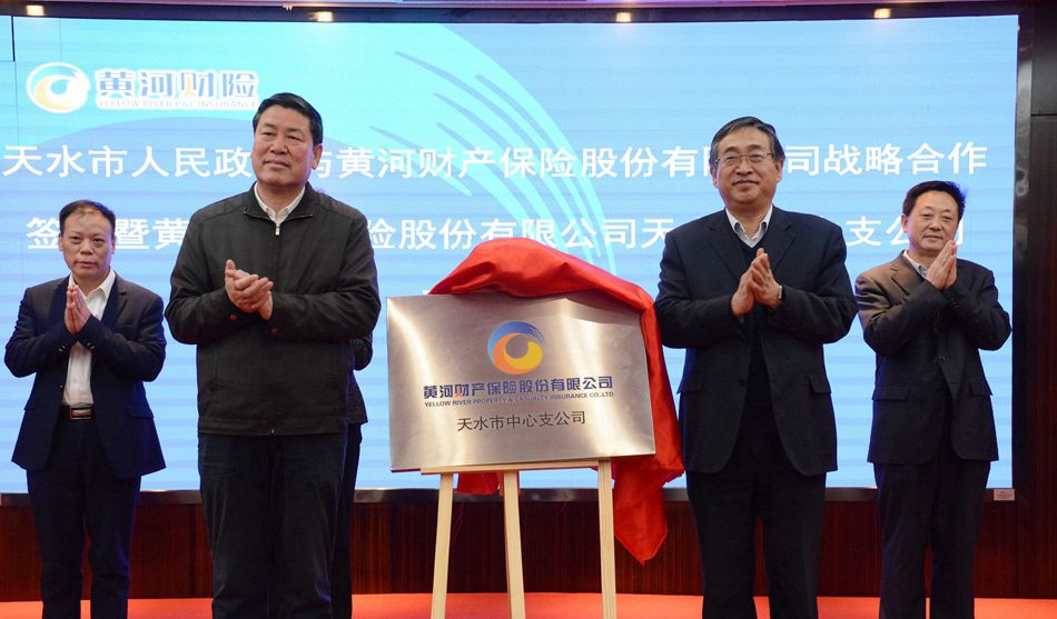 1月13日,天水市政府与黄河财产保险股份有限公司签订战略合作协议,黄河财险天水市中心支公司挂牌成立。签约暨挂牌开业仪式在天水宾馆举行。