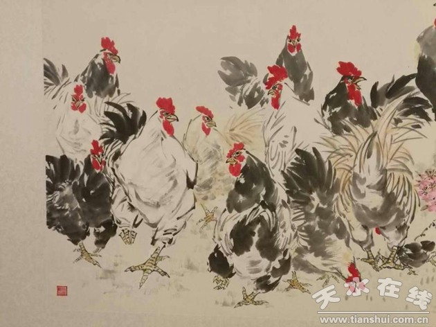 此次画展展出100余幅,其中以鸡为主题的作品为主。