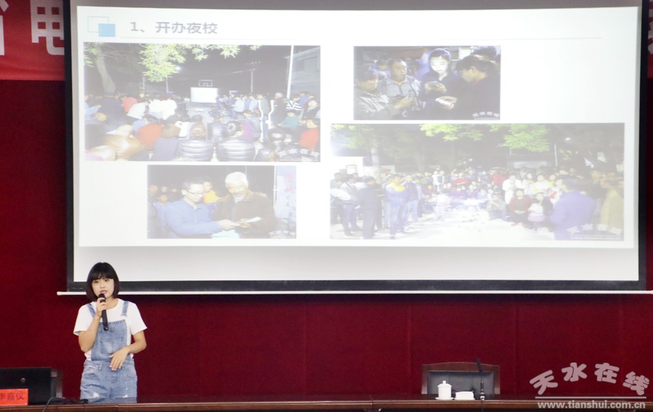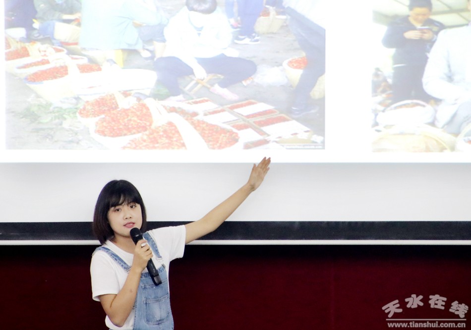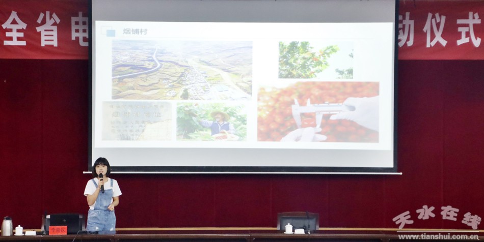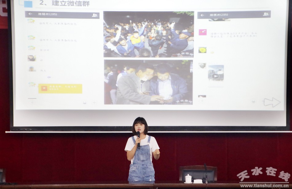 天水在线兰州报道 8月27日下午,应甘肃省商务厅的邀请,天水在线电商部负责人、烟铺村电商服务点技术指导李嘉仪,在全省乡镇电商负责人培训班首期上,就天水在线今年在秦州区玉泉镇烟铺村指导实施的“烟铺果农微信直销自家樱桃”和在清水县4个贫困村指导实施的“清水果农微信直销自家青皮核桃”的农村电商模式和取得的成效进行经验分享。