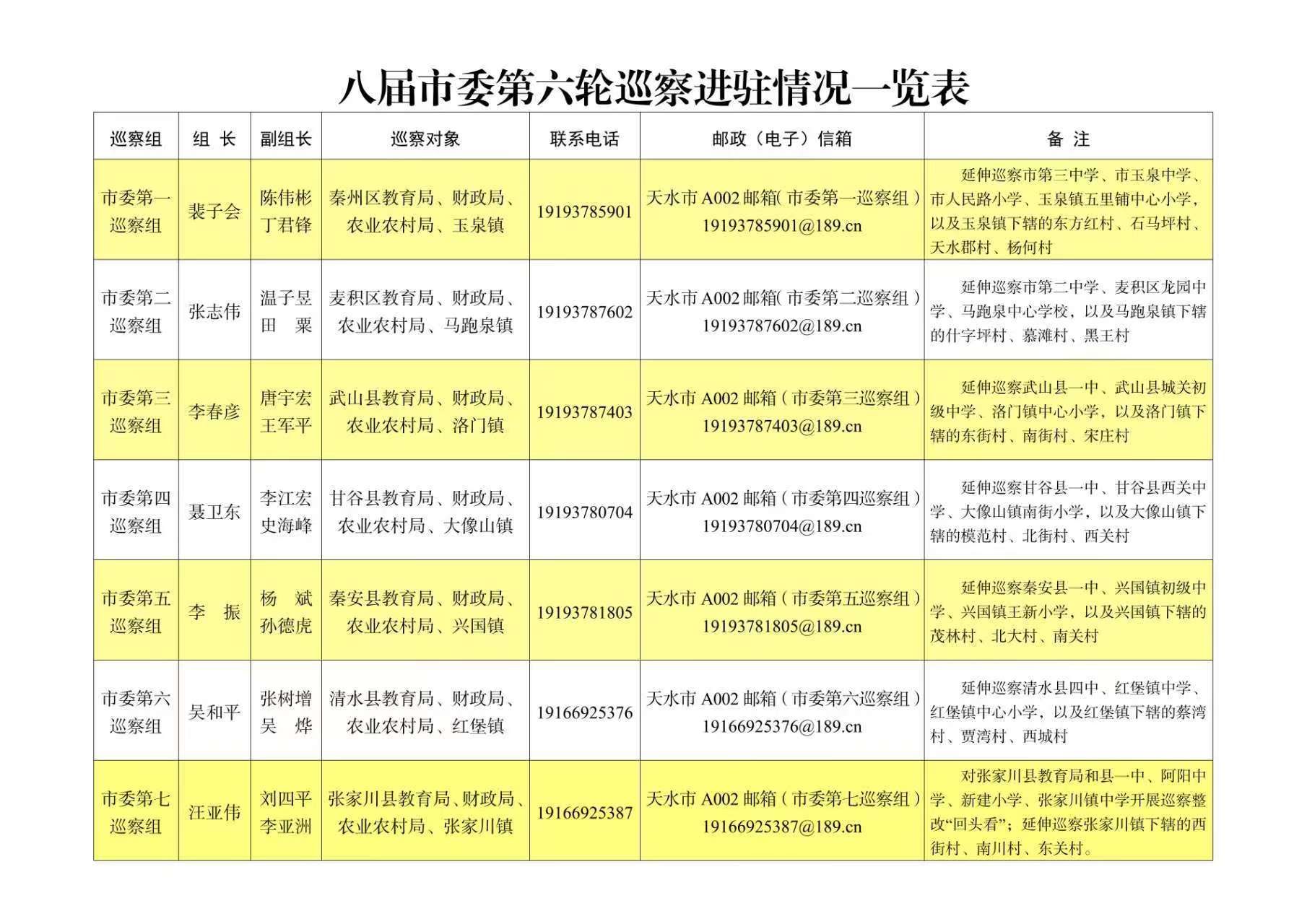 根据市委统一部署,八届市委第六轮巡察组建7个巡察组,分别对7个县区的教育局(延伸巡察3所中小学校)、财政局、农业农村局和1个重点镇(延伸巡察3个村)开展提级巡察。截至9月27日,市委各巡察组进驻工作全部完成。